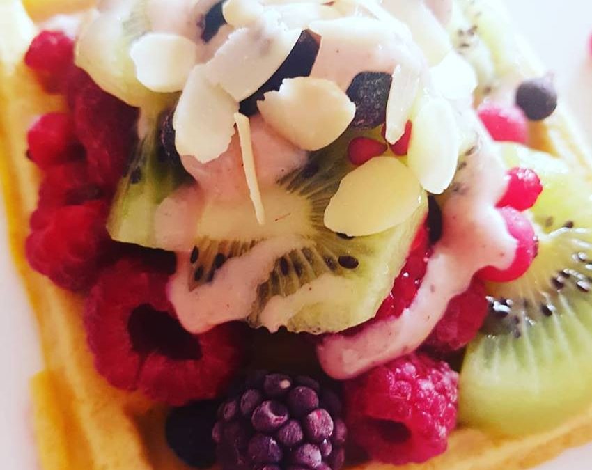 Bialko ubij na sztywną pianę, następnie stopniowo dodaj żółtko, mąkę, napój kokosowy, proszek do pieczenia, całość zblenduj.