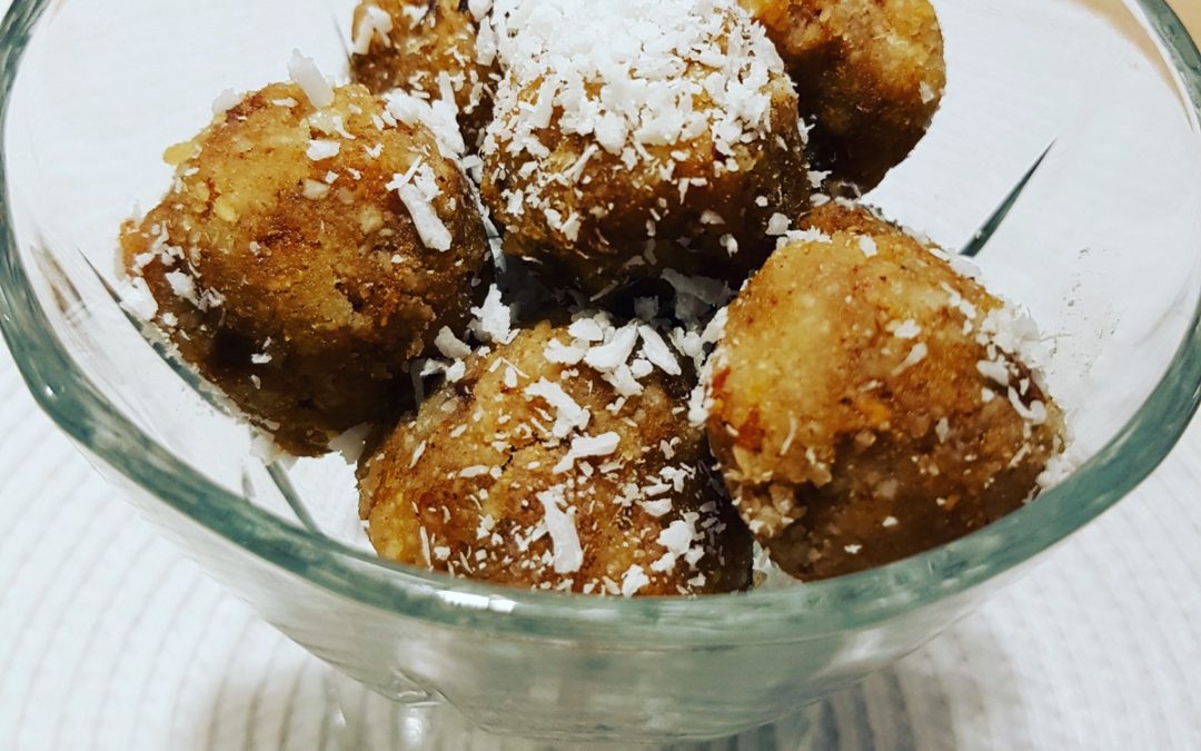 Daktyle zalej ciepłą wodą, odstaw na około 30 minut. Następnie zblenduj i połącz z pozostałymi składnikami tak, żeby powstały kuleczki. Całość można posypać wiórkami kokosowymi. Wstaw do lodówki.