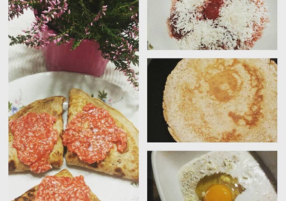 Mus truskawkowo-kokosowy: truskawki mrożone 80 g, wiórki kokosowe 3 g, stewia (użyłam blendera)
