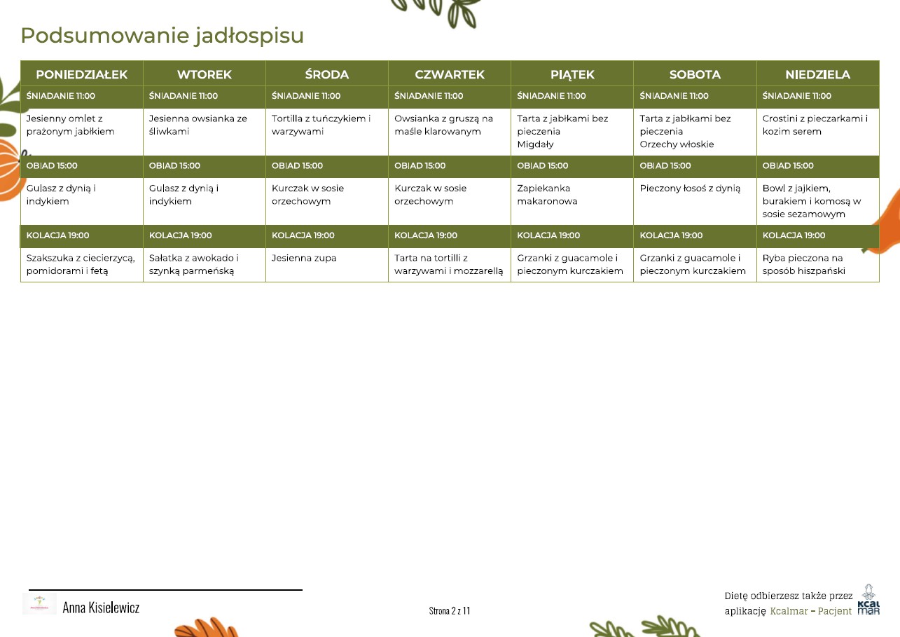 Dieta LOW CARB cieszy się ogromnym uznaniem z Waszej strony i wcale mnie to nie dziwi, dlatego przygotowałam kolejną jej wersję. Pojawiają się tutaj produkty typowo jesienne, jak dynia, jabłka, śliwki, a także potrawy rozgrzewające i aromatyczne. Niektóre posiłki, jak np. obiad są na dwa dni, dzięki czemu zaoszczędzisz czas na ich przygotowanie. 3 posiłki dziennie to opcja optymalna dla zapracowanych i zabieganych.