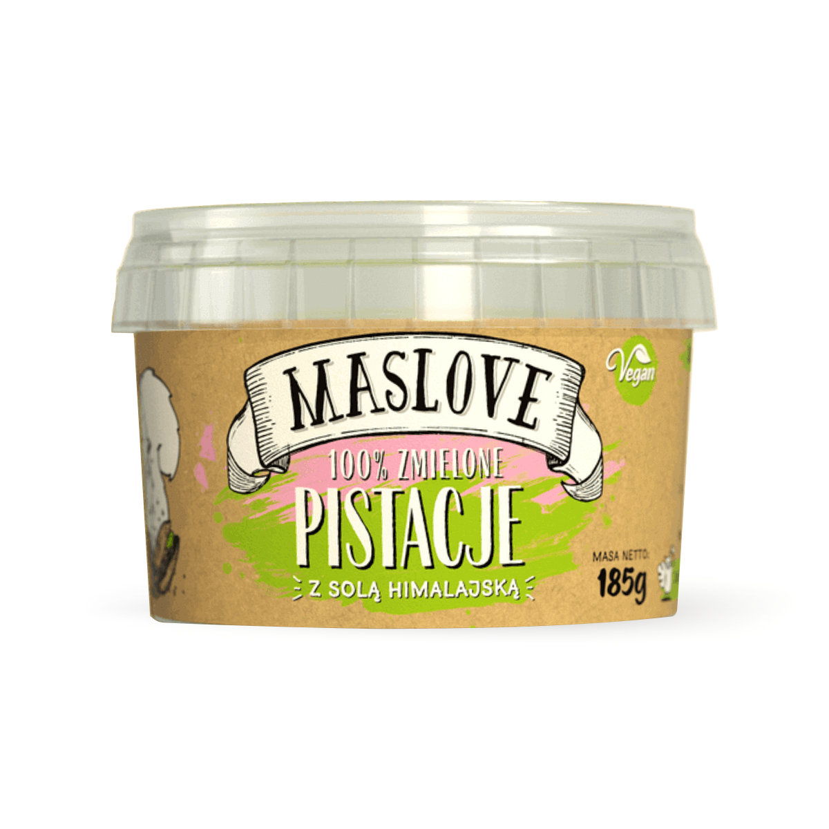 Smakowita pasta pistacjowa MASLOVE to lekko słone, zmielone pistacje 100% dla prawdziwych smakoszy. Produkt posoliliśmy solą himalajską – najczystszą solą pochodzącą z pasm górskich Himalajów. Pyszna pasta z pistacji to zatem propozycja dla miłośników słonych, ale zdrowych przekąsek.